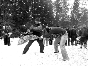 Планируются катания на тачках, бои мешками, набитыми бумагой, командная игра по перетягиванию каната, а девушки будут ходить с коромыслами – кто быстрее донесет полные воды ведра до финиша. А еще мастера рукопашного боя проведут мастер-классы.