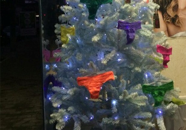 Новость - События - В харьковском супермаркете елку украсили женскими трусами