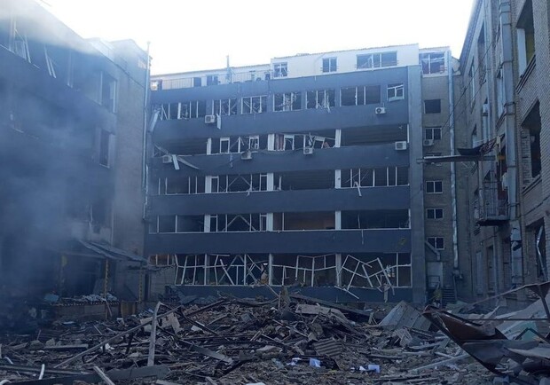 "В результате попадания ракет произошло возгорание на территории сооружения, повреждены стеклопакеты и фасад. Количество пострадавших уточняется", - сказали в полиции.