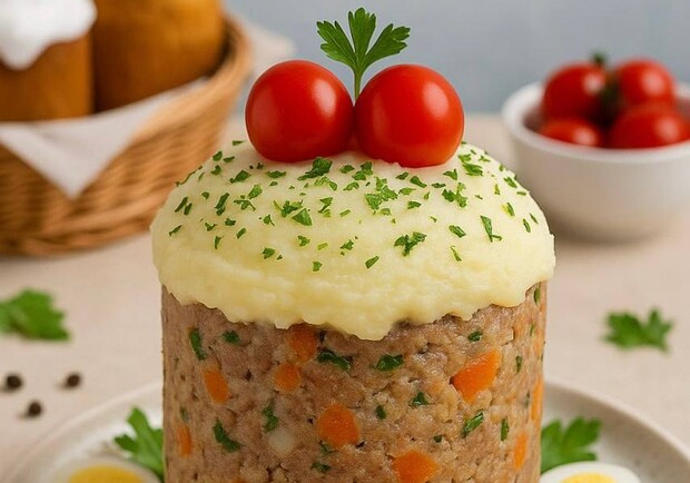 Она сочетает сытность мясного блюда с эстетикой традиционного кулича.