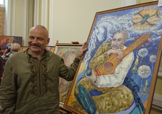 Среди поддержавших инициативу художников — художница Наталья Попович-Самусь. Она представила полотно "Казак Мамай". Прообразом современного Мамая стал муж художницы — воин-герой Александр Самусь, скульптор, график, художник-мультипликатор, который в 2022 добровольцем пошел защищать свой дом и землю. После тяжелого ранения он вернулся домой.