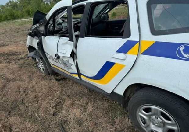 Ранены четверо полицейских: вражеский FPV-дрон ударил рядом со служебным авто на Харьковщине. Фото: Нацполиция