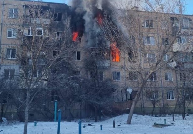 По данным Харьковского городского головы Игоря Терехова, "шахед" попал в пятиэтажку. Уже выгорело три верхних этажа.