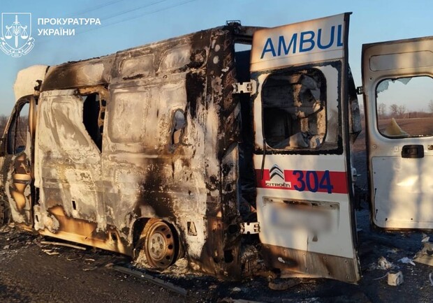В Харьковской области российский дрон ударил по автомобилю скорой помощи: погибли двое медиков. Фото: Харьковская областная прокуратура