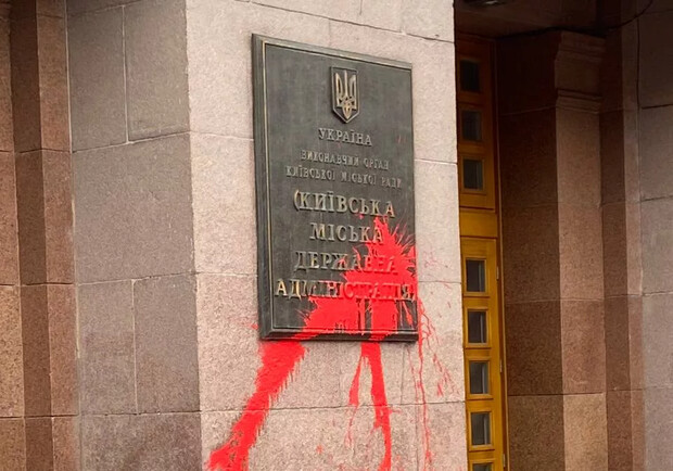Здание КГГА в Киеве облили красной краской: что требовали митингующие