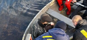 Обессиленные находились в леду: в Днепре водолазы ГСЧС спасли лебедей