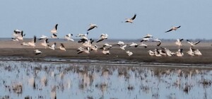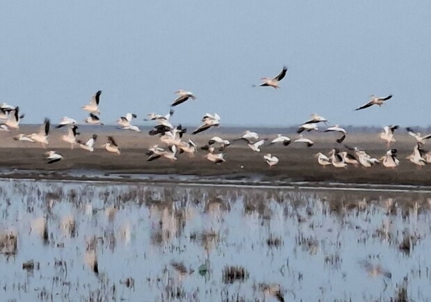 В Одесской области у лимана Сасык заметили стаю из 55 розовых пеликанов: что известно о редких птицах
