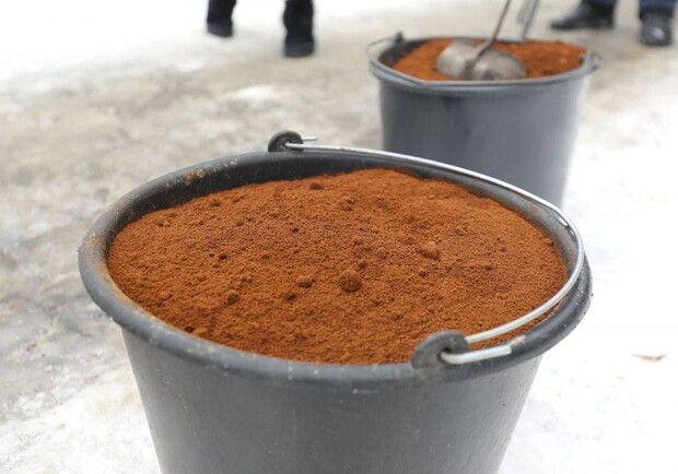 В Ирпене коммунальщики посыпают дорожки кофейной гущей