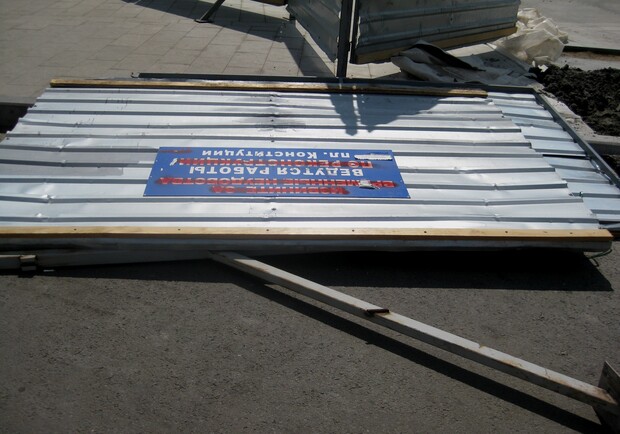 ![]() Около выхода из метро возгромоздились десятки ящиков с материалами для ремонтных работ. |