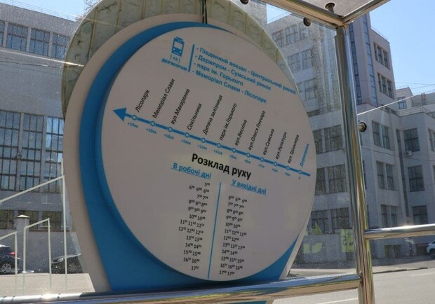 На остановке трамвайного маршрута №12 в районе Госпрома установили круглую таблицу с расписанием движения.