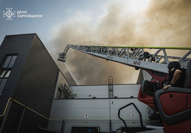 Рятувальники більше доби борються із вогнем після обстрілу складів під Харковом. Фото: ДСНС